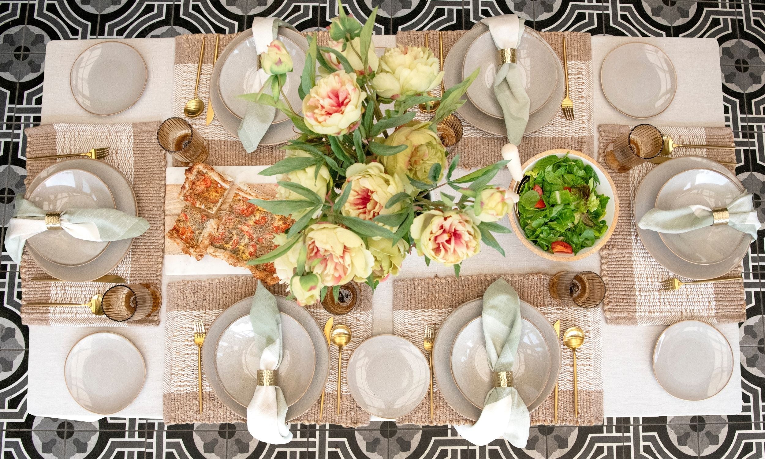Urban Street Beige channels a neutral palette into something that feels clean, grounded, and inherently modern. An ivory tablecloth sets the tone for tonal layering, while taupe and warm white placemats add understated contrast. Sleek, sculptural ceramics in earthy finishes speak to refined taste, while wooden details introduce warmth and tactile richness. The result is effortlessly stylish: modern without being stark, natural without being rustic for the Friday night dinner with friends oozing sophistication.